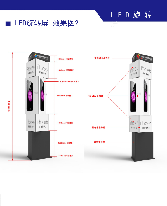 LED旋轉屏不僅可以作商業廣告展示平臺使用,更是各級政府部門進行公益宣傳、法制宣傳的優佳平臺,適用于各大型商場樓頂、墻面,廣場,商業中心,十字路口,步行街等多種位置。模塊化的設計,便于拆卸、重新安裝,可根據需要更換安裝地點。