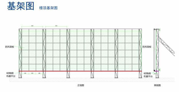 度小于10毫米,在畫面高度方向要求上下橫梁不平行度小于20毫米。 對基礎支架制作強度要求: