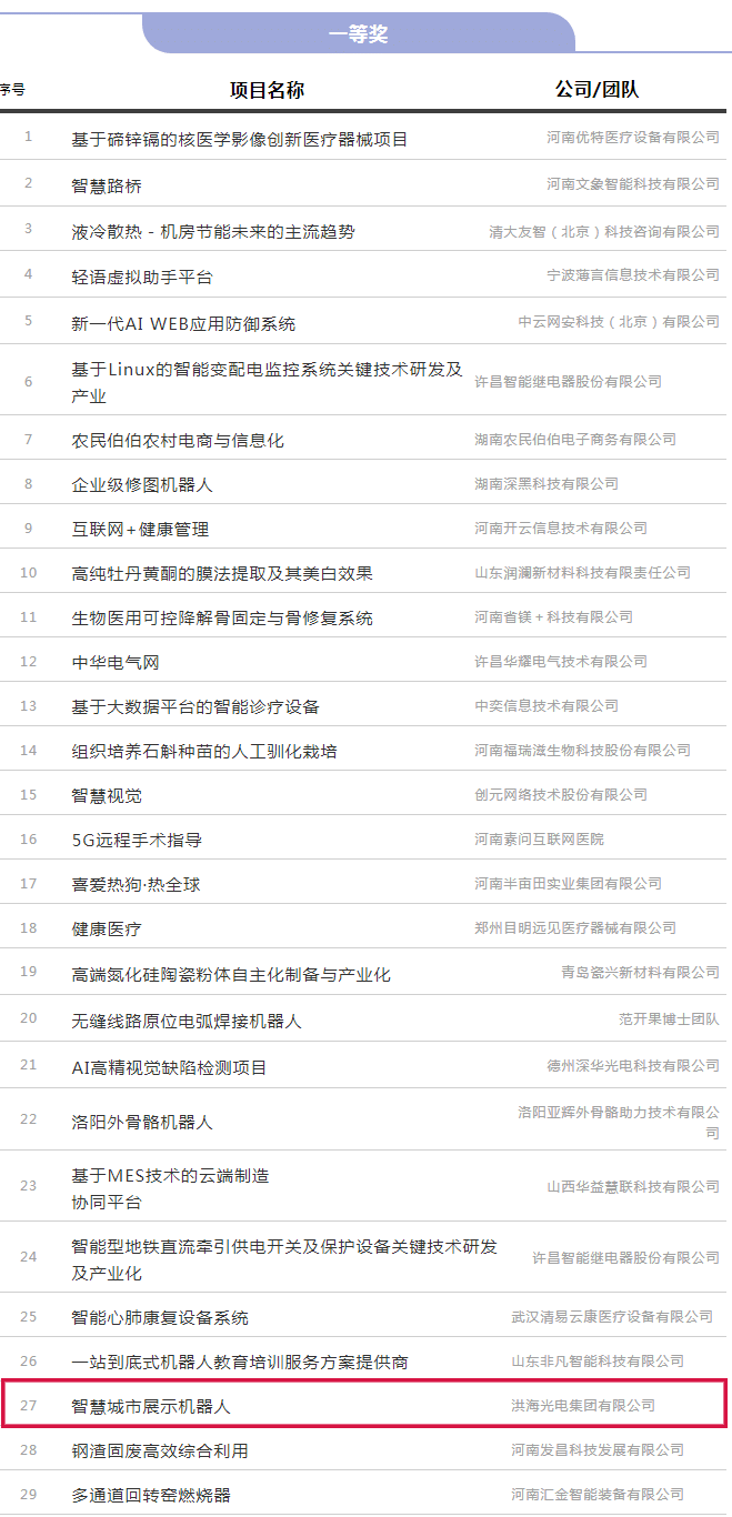 清華校友第五屆三創(chuàng)大賽中原賽區(qū),歷時6個月,共收到來自湖南、湖北、山東、山西、河南五個省份的102個項目報名參賽。圍繞大數(shù)據(jù)、健康醫(yī)療,先進制造,人居環(huán)境、文創(chuàng)體育等領域,在各賽點初賽的基礎上,7月29日在鄭州舉行了中原賽區(qū)決賽。我司參與項目“智慧城市展示機器人”通過線上參賽的形式,在決賽中脫穎而出,獲得了各個專家評委的一致肯定,取得中原賽區(qū)一等獎,并獲得推薦參加全球總決賽。