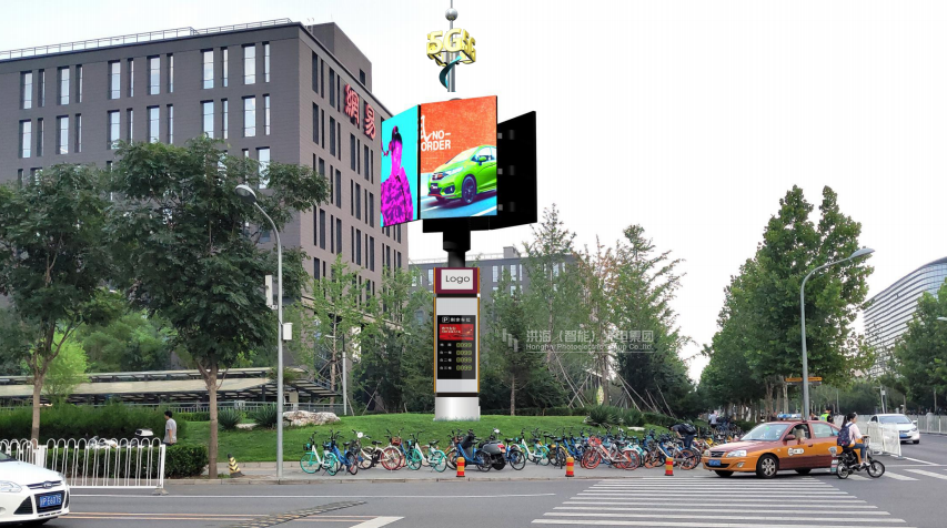 在智慧城市建設(shè)中,洪海光電集團(tuán)研發(fā)團(tuán)隊(duì)將原有的單一燈桿照明功能向“多桿合一”轉(zhuǎn)變,并加入各種5G廣告設(shè)計(jì)元素,不僅能美化道路環(huán)境,還能降本增效,并增加廣告投放曝光量及質(zhì)量,同時(shí)也能提高市政管理效率。